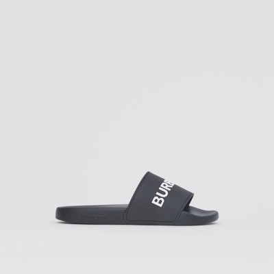 The slip-on style features an Archive beige TPU strap across the upper as well as a moulded footbed for comfort. Com abertura nos dedos estilo slip-on solado com logo e solado flat. Shop Burberry Color-block Leather Slides In Black from 400 stores starting at 520.